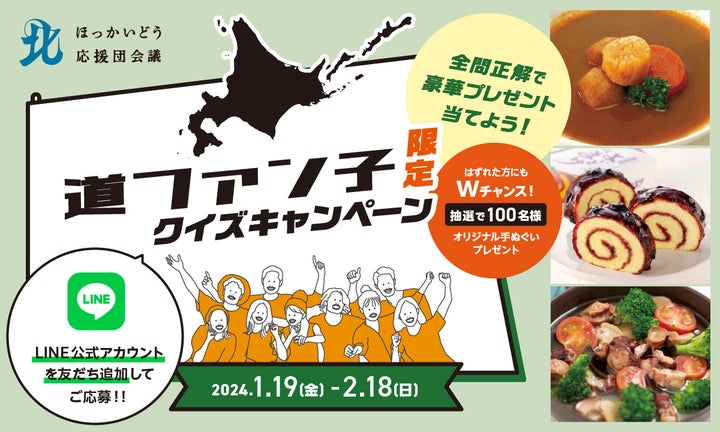 応募方法はほっかいどう応援団会議LINE公式アカウントを友だち追加し、トーク画面から「応募する」ボタンをタップして応募フォームにクイズの答えと必要事項を入力することです。