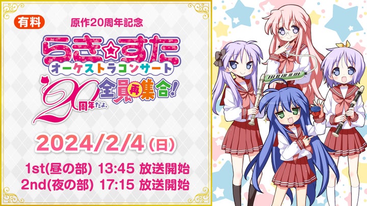 ニコニコ生放送では、2月4日に行われる『らき☆すた』のオーケストラコンサートの有料生配信に加え、アニメの全話無料一挙放送を1月27日と28日に行います。