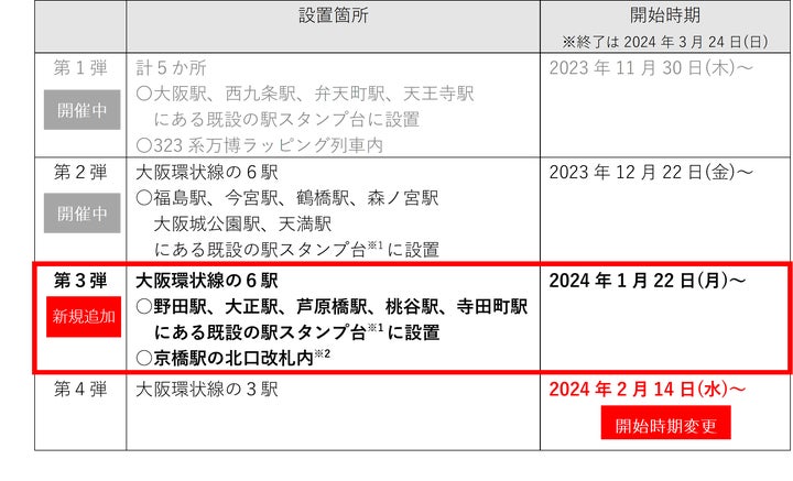 「大阪環状線NFT駅スタンプラリー」は、2024年1月22日から第3弾が開始され、6つの新しい駅にNFT駅スタンプが追加されます。