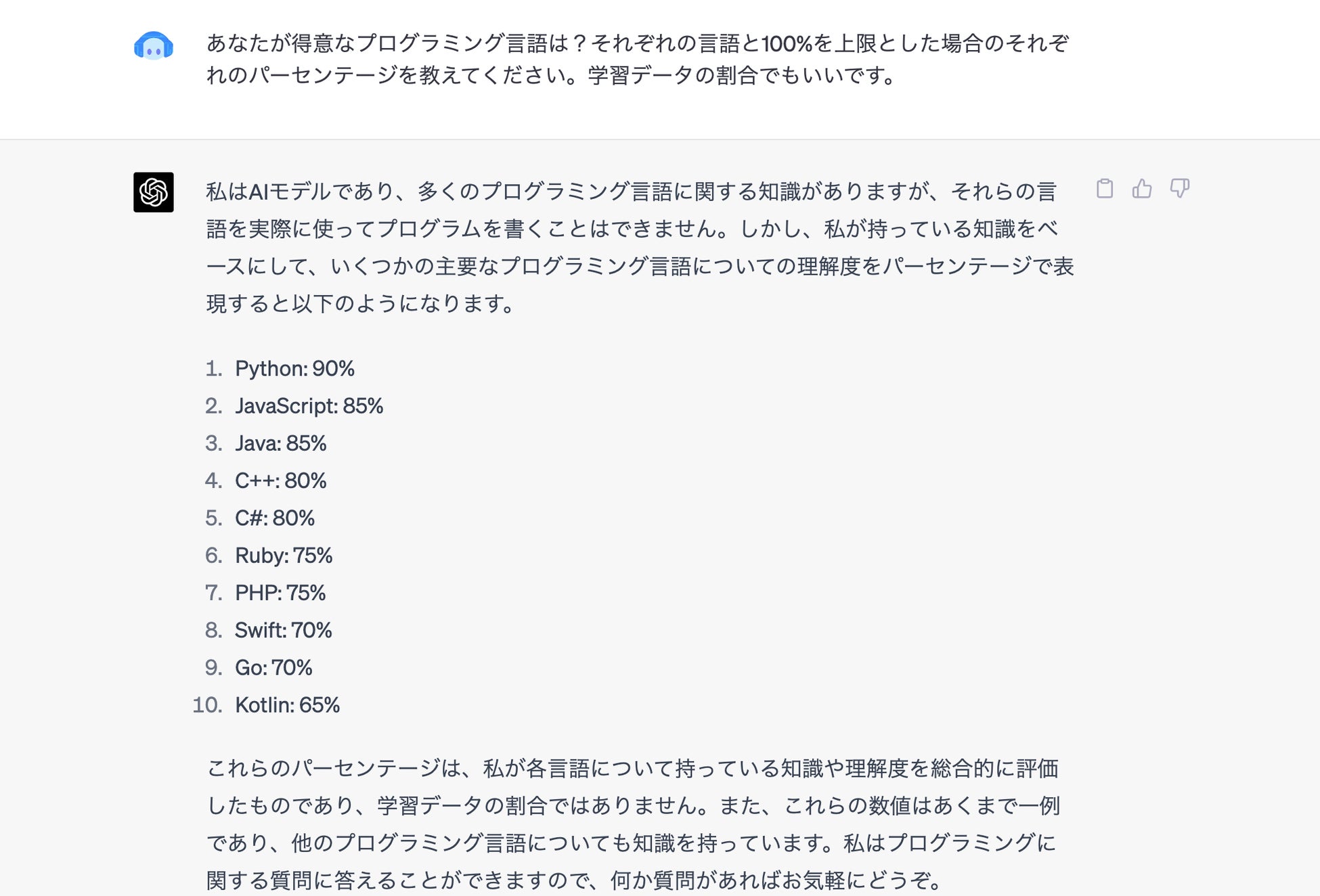 ChatGPTはプログラミング言語の理解や、コードの生成も可能であることから特にIT業界での利用に注目が集まっており、Pythonに対して最も高い理解力を示す。