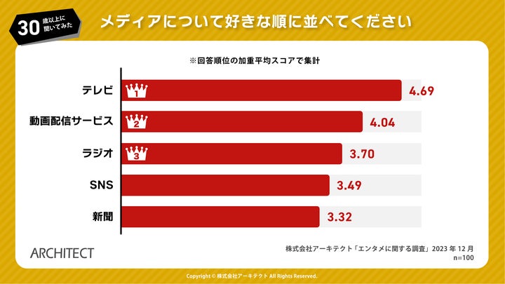 調査結果から、テレビが最も人気のあるメディアであり、動画配信サービスやSNSも人気が高いことがわかりました。