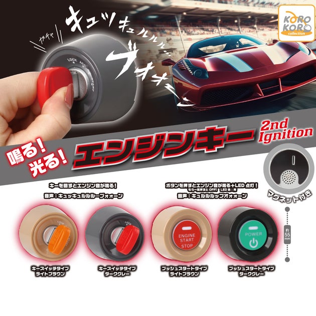 アイピーフォー株式会社は、2024年1月中旬から全国のカプセルトイコーナーで『鳴る!光る!エンジンキー2nd Ignition』を発売します。
