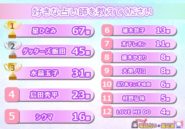 - 1位は星ひとみさん、的確で鋭い占いで知られる