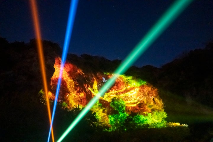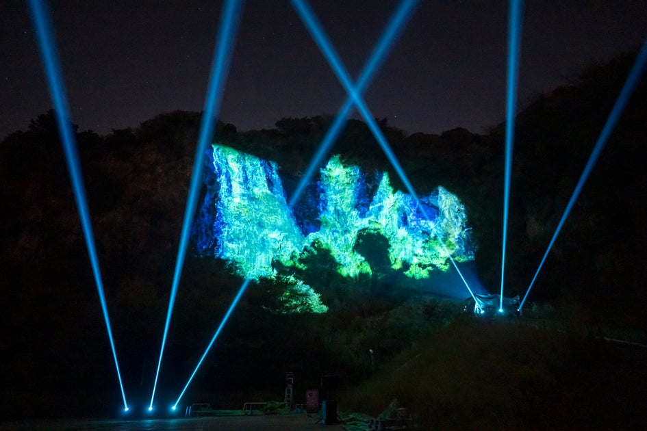 西尾市制70周年記念事業の一環として、吉良屏風壁でプロジェクションマッピングが行われました。