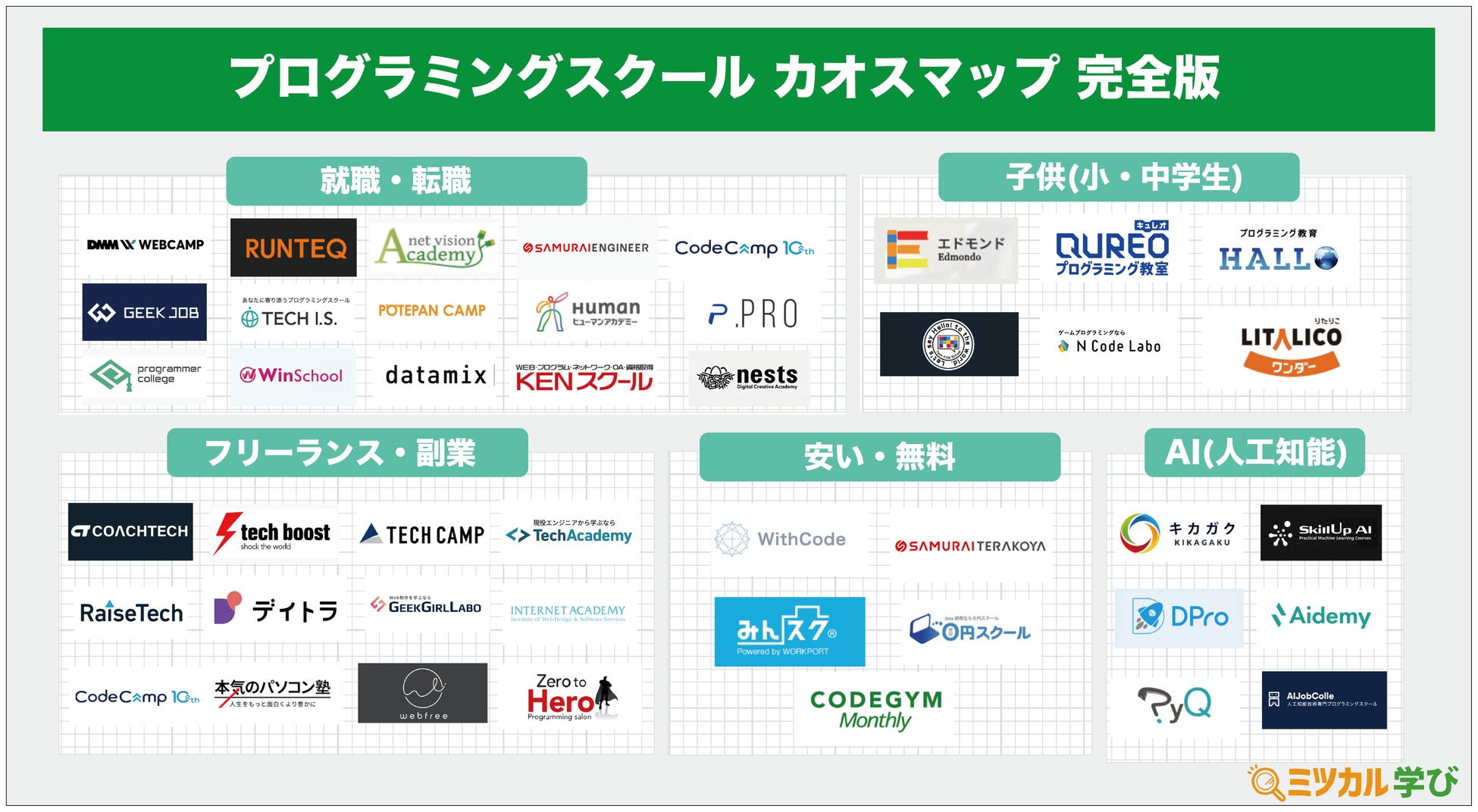 この背景から、プログラミングスクールのカオスマップが作成されました。