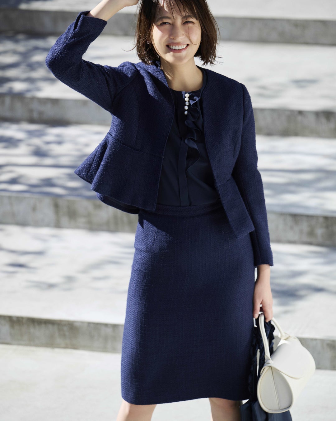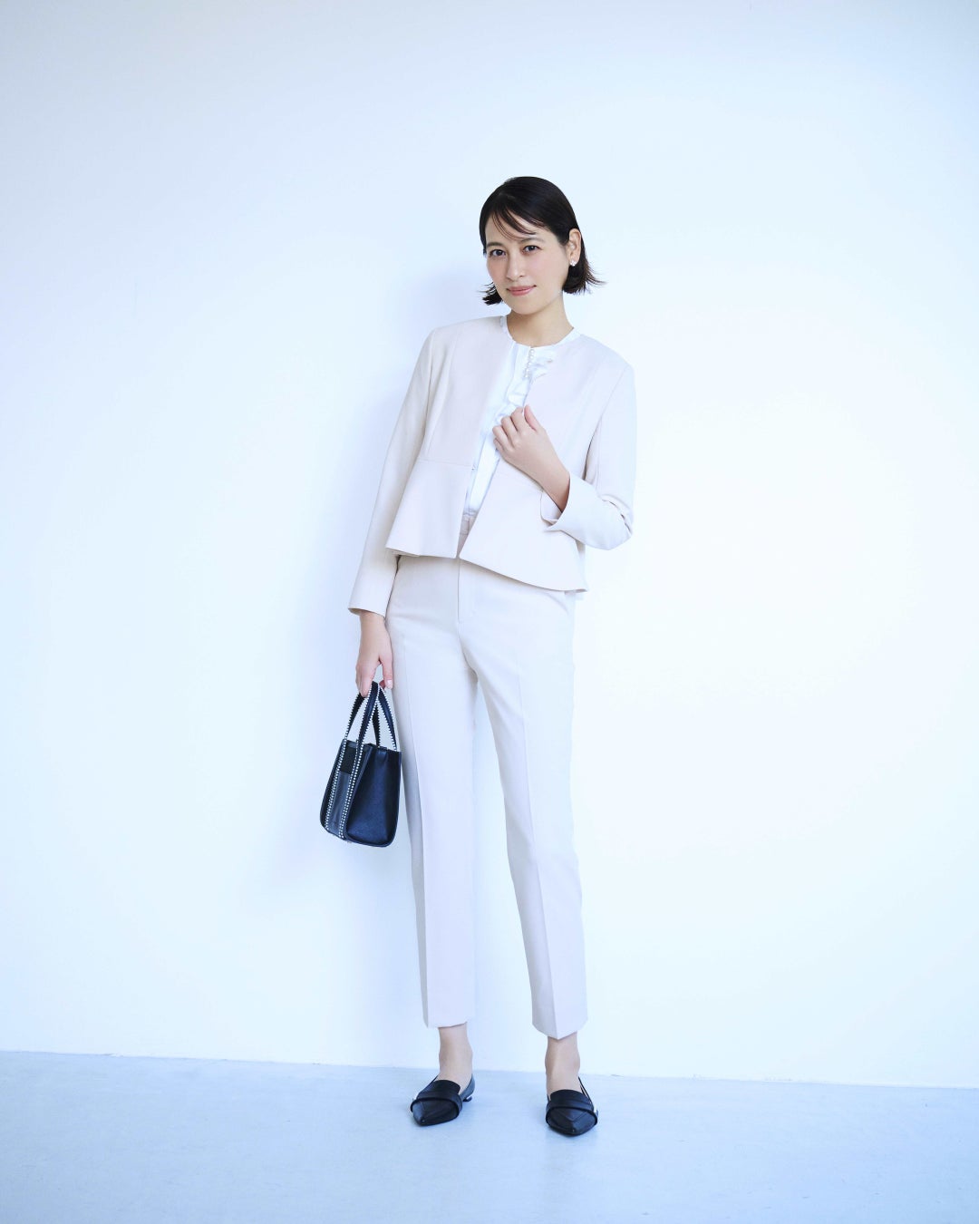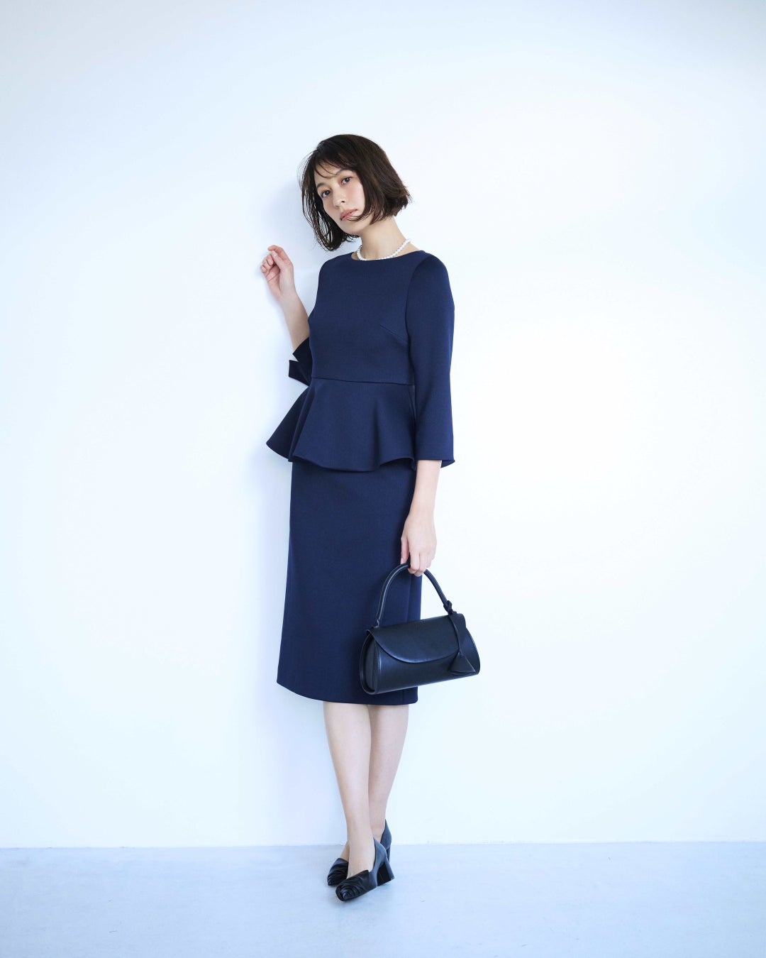 特に注目すべきは、小粋なパールとぺプラムが優雅な表情を引き出すエレガントなスタイルや、知的な女性らしさを醸し出す繊細なプリーツとボウタイが特徴のスタイルです。