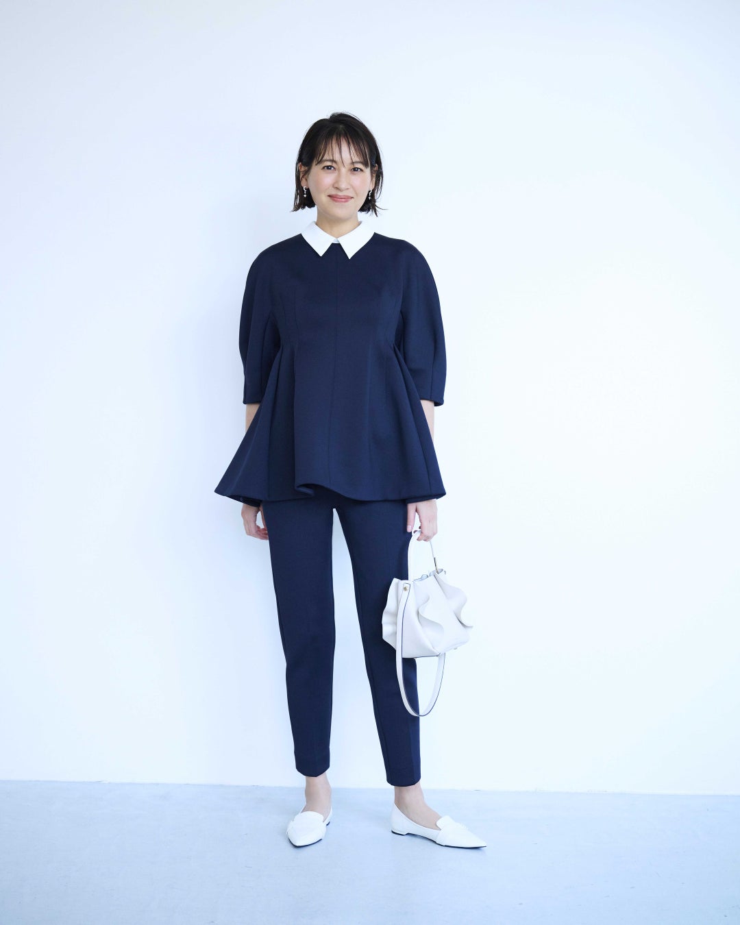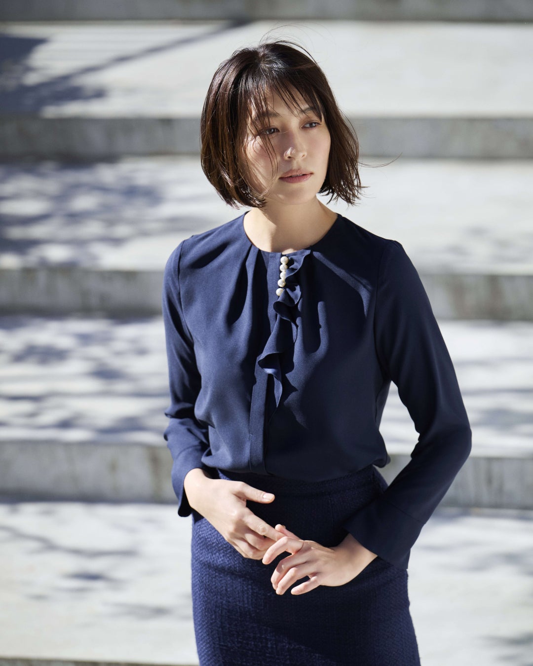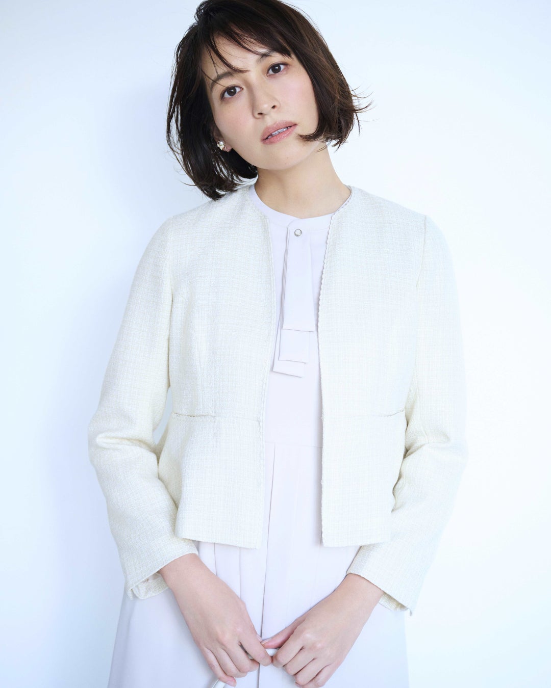 特に注目すべきは、小粋なパールとぺプラムが優雅な表情を引き出すエレガントなスタイルや、知的な女性らしさを醸し出す繊細なプリーツとボウタイが特徴のスタイルです。