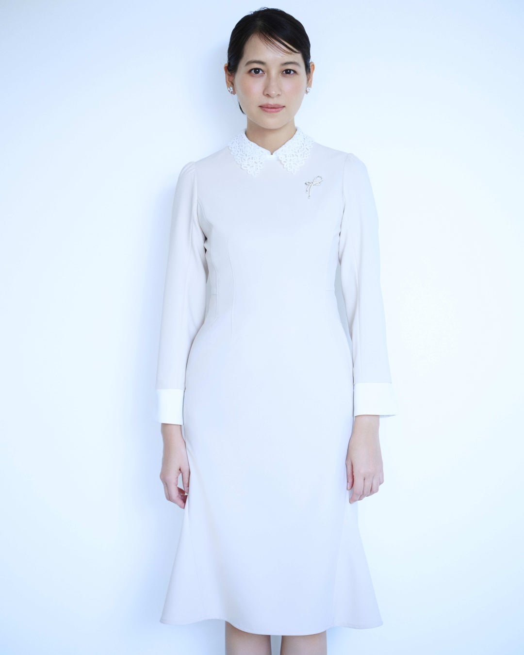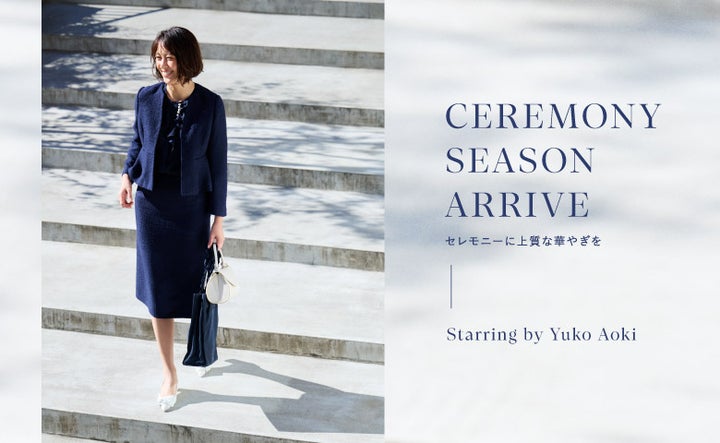 • 青木裕子さんが華やかなセレモニーアイテムをエレガントに着こなし、新しい環境へのスタートを祝いました。
