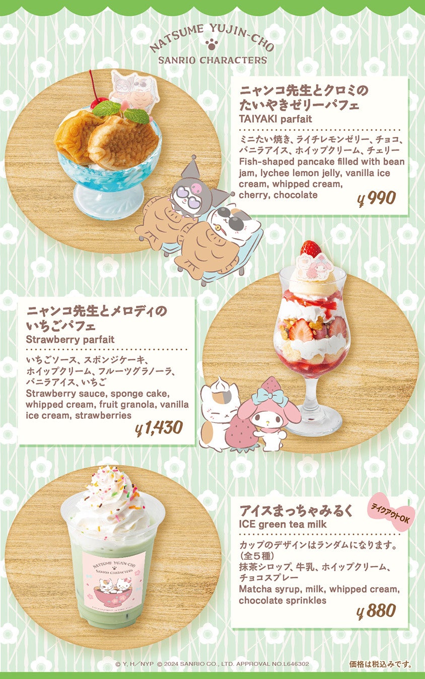 - ニャンコ先生とマイメロディのいちごパフェも魅力的