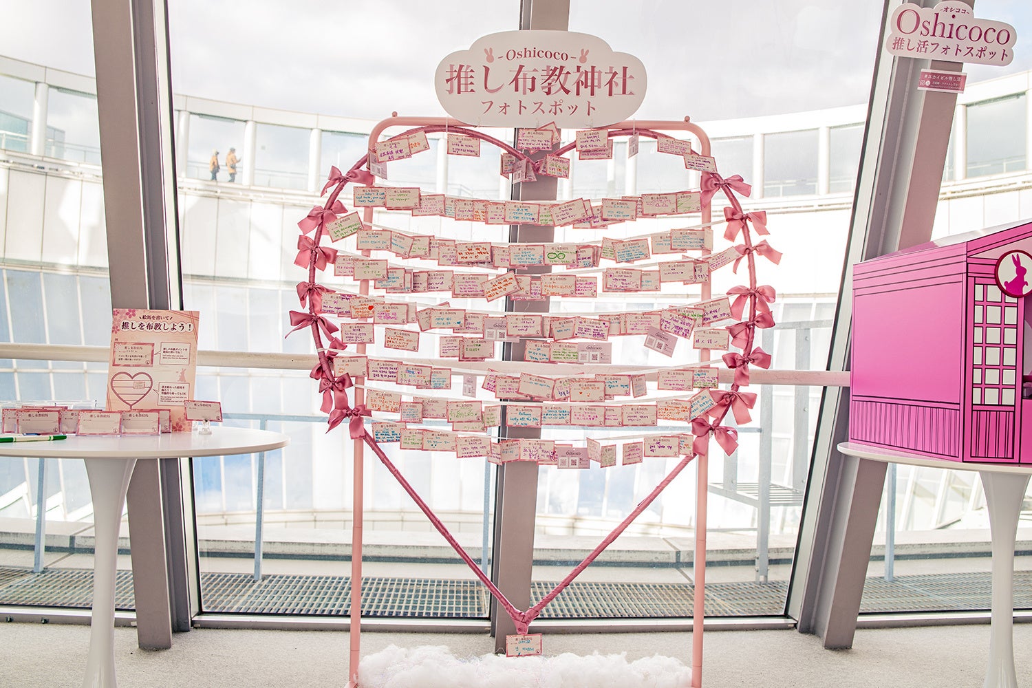 空中庭園40Fには可愛らしいピンクの神社が登場し、アクリルスタンドやぬいぐるみと一緒に写真が撮れるフォトスポットもあります。
