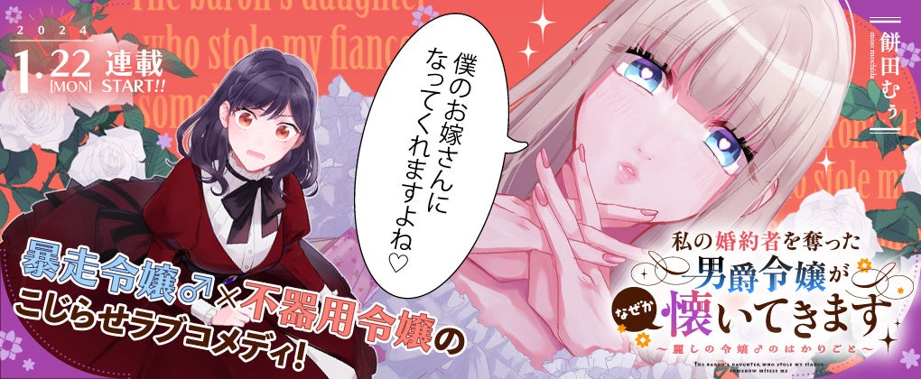 マイクロマガジン社は、月刊WEB漫画雑誌「コミックライドivy」vol.12にて、『私の婚約者を奪った男爵令嬢がなぜか懐いてきます~麗しの令嬢♂のはかりごと~』の連載を開始しました。