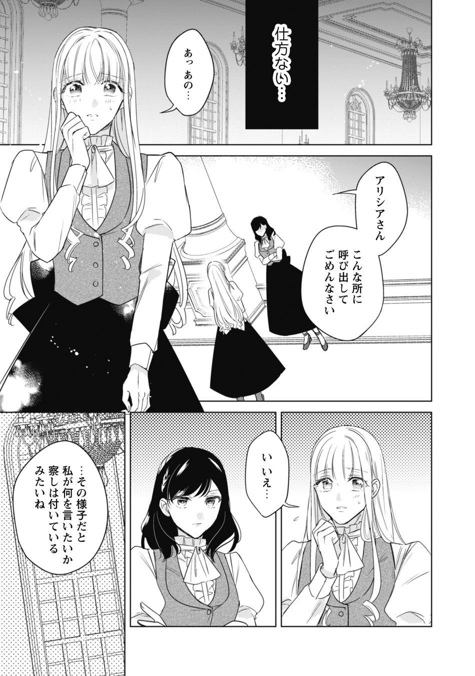 この作品は、伯爵令嬢スカーレットが自身の婚約者と男爵令嬢アリシアの仲睦まじさに悩み、アリシアがなぜかスカーレットにべったり懐いてしまうというストーリーです。