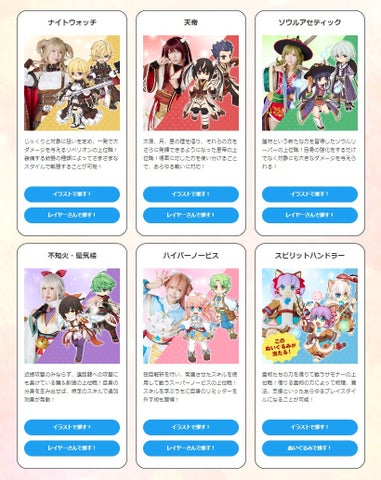- キャンペーンではコスプレイヤーが新衣装を着用し、各職業を写真やイラストで紹介