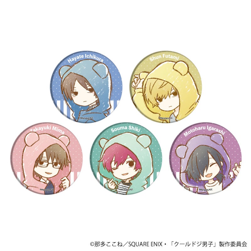 直径65mmの大きめ缶バッジは、颯・瞬・蒼真・貴之・元晴のカッコ可愛いお顔にクローズアップしたデザイン。キャラクターカラーのこぐまパーカーをかぶる姿、そして5人の愛らしい表情に心ゆくまで満たされてください♪