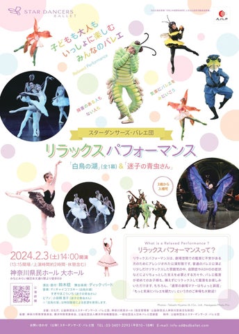 公益財団法人スターダンサーズ・バレエ団は、2024年2月3日に神奈川県民ホール、2月12日に埼玉会館でリラックスパフォーマンスによるバレエ公演を開催します。