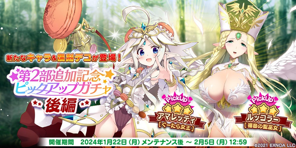 - 女王と聖巫女デコが手に入るピックアップガチャ開催中