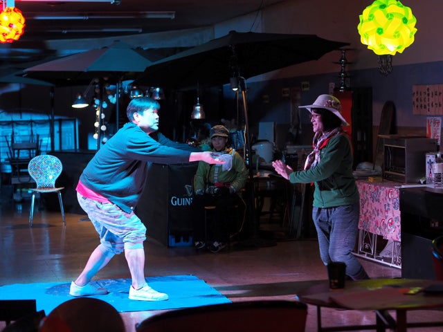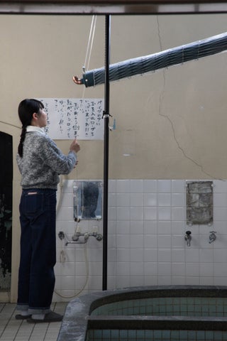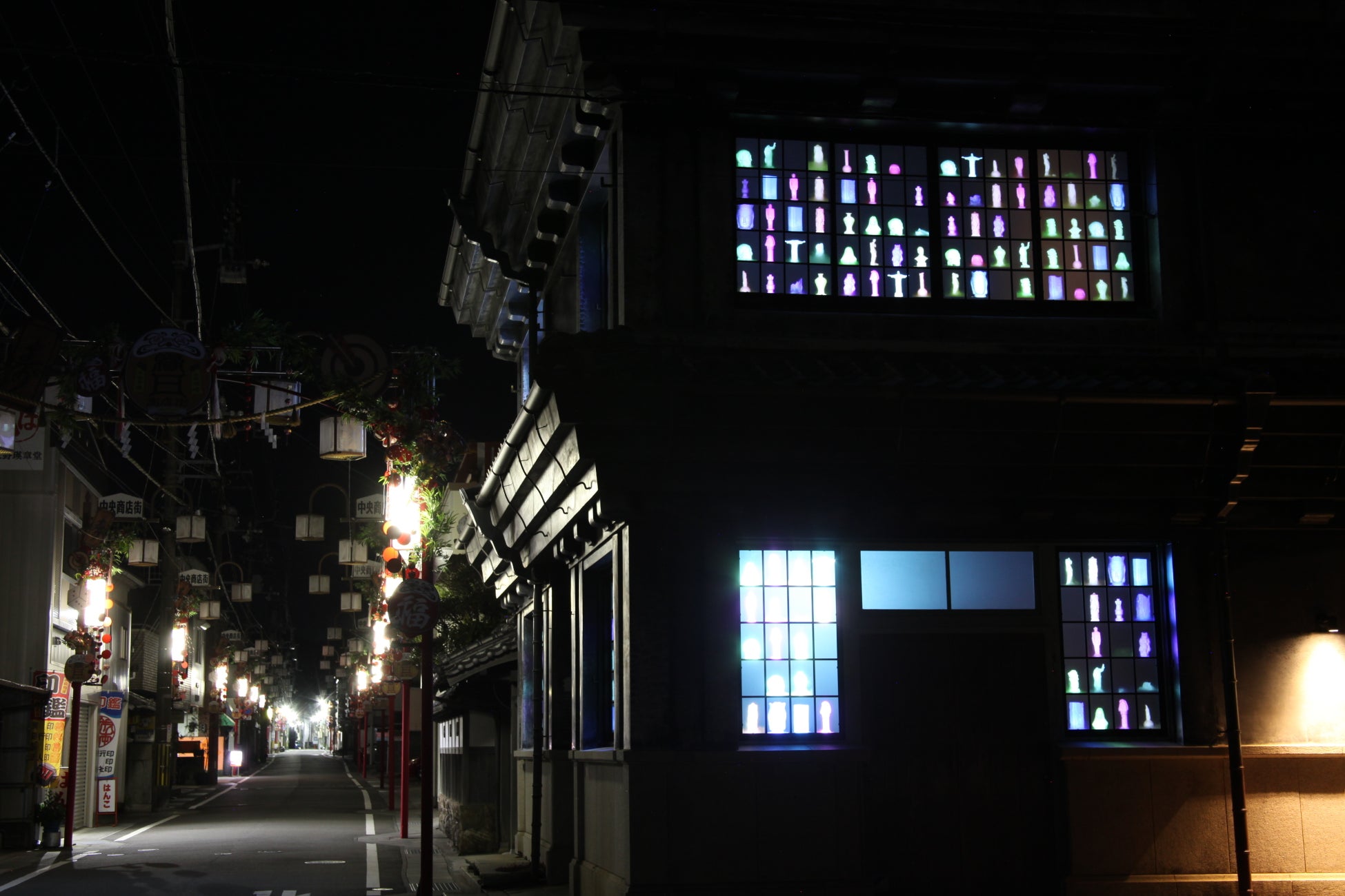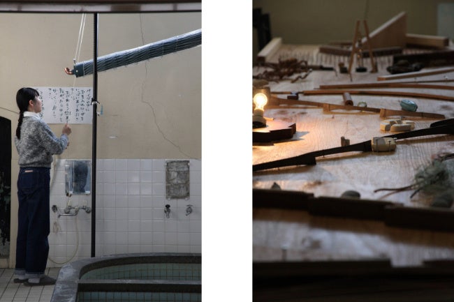 諌山さんは商家建築の格子窓に水中で形が崩れていく映像作品を投影し、oono yuukiさんは廃銭湯の音響を活用した巨大な装置を制作しました。