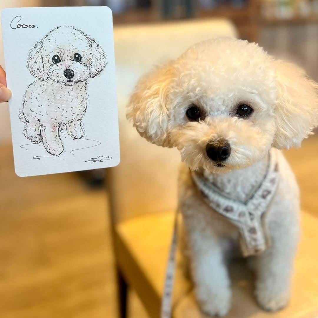 - 愛犬の特徴を捉えた高品質な似顔絵、限定グッズ