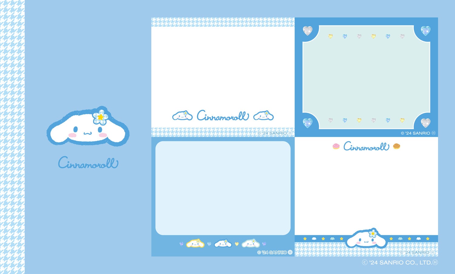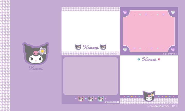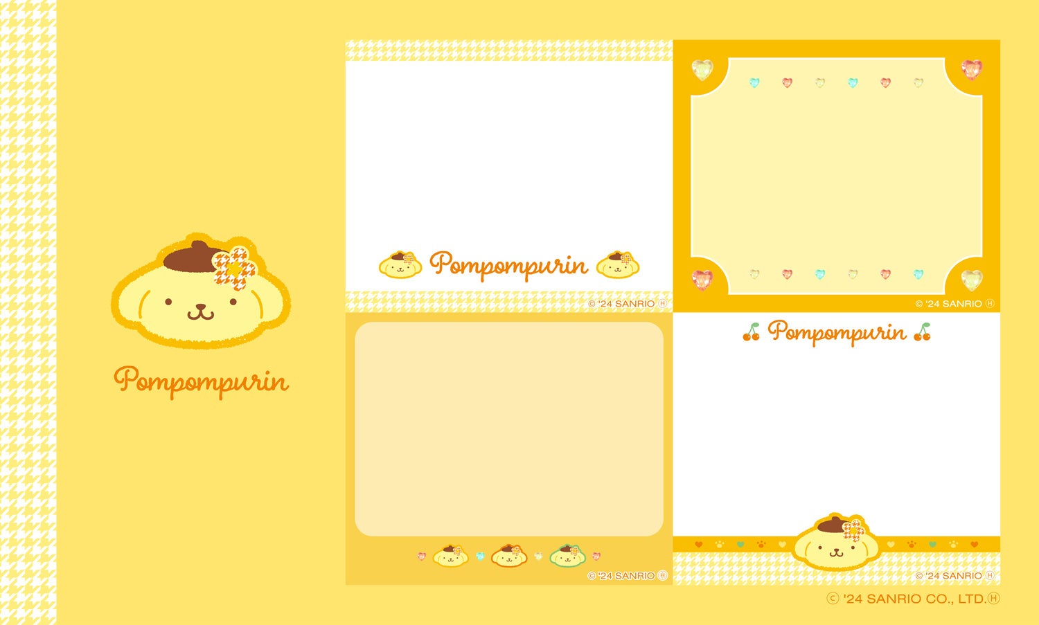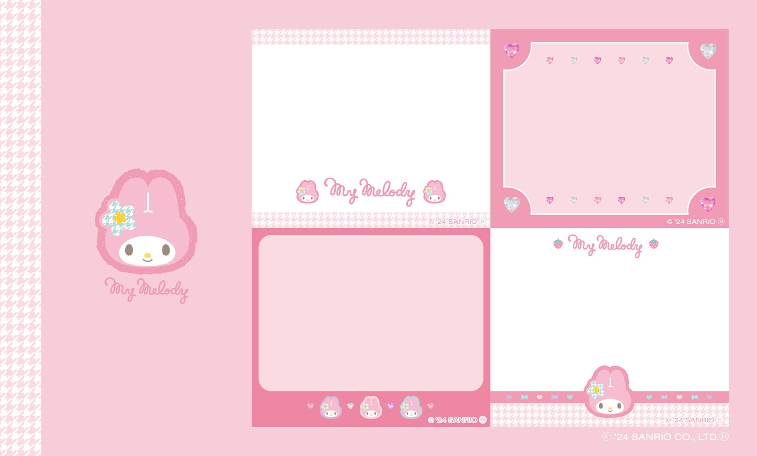 - 撮影フレーム&シールふちセットには、ハローキティや他のサンリオキャラクターが登場し、90年代のプリントシールを思い起こさせるようなデザインが魅力