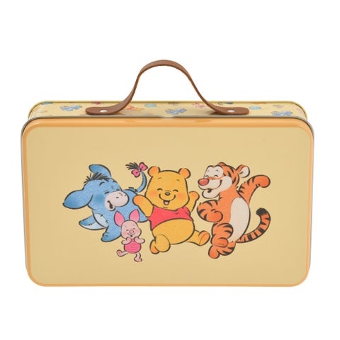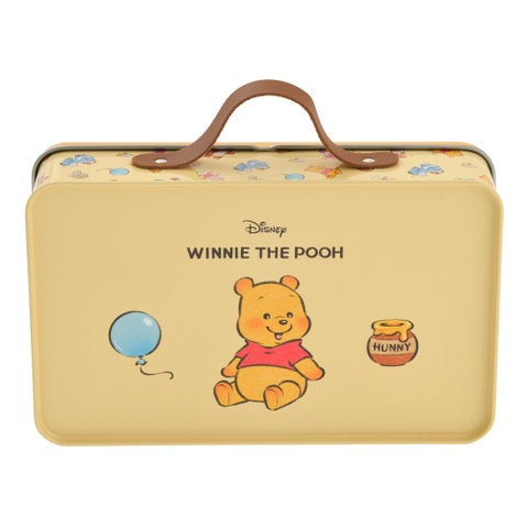 - 缶入りクッキーもプーさんや仲間たちのアートがプリントされている