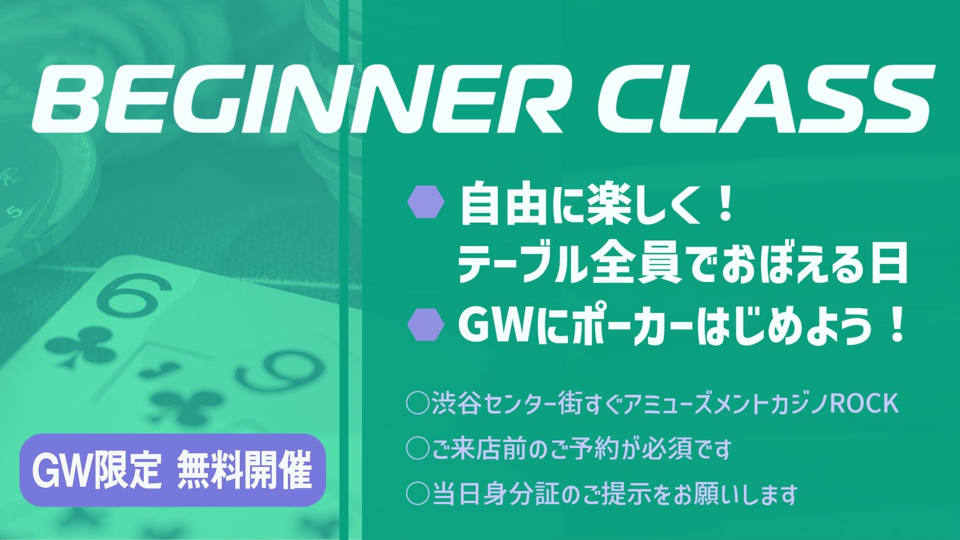 ポーカーをイチから始める方向けの、ルール説明ありの「ビギナークラス」
