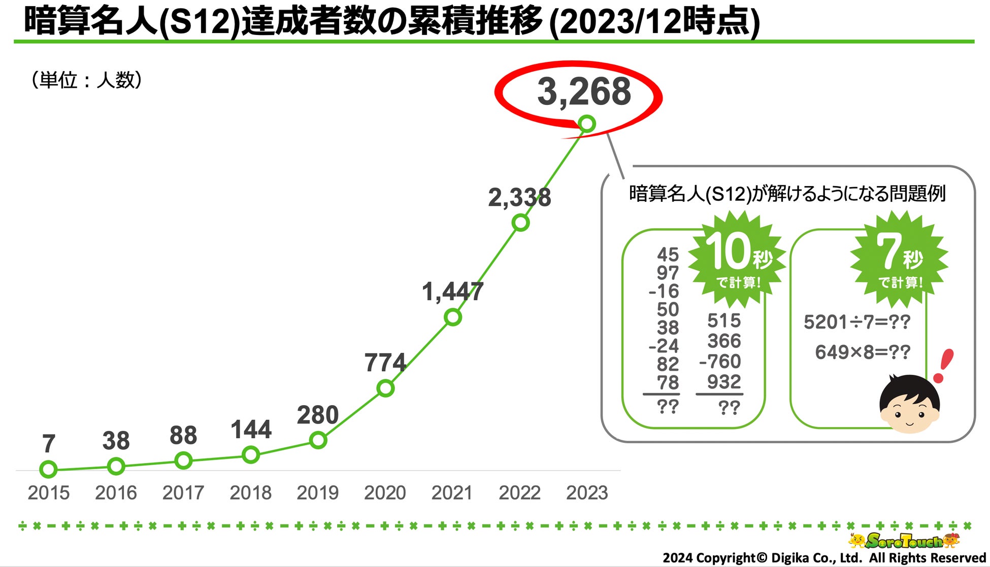 • 3000人以上の暗算名人が誕生し、子どもたちの努力とご家族や教室関係者の支援の賜物