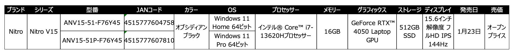 Nitro V 15は、2024年1月25日に発売されます。