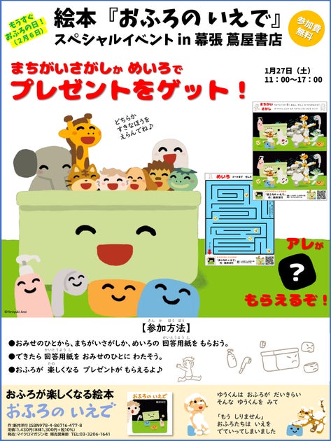- 1月27日(土)に幕張蔦屋書店で絵本『おふろのいえで』のスペシャルイベント開催