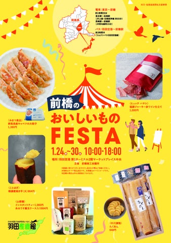 - 羽田空港第1ターミナル2階の「羽田産直館」で「前橋のおいしいものFESTA」が開催