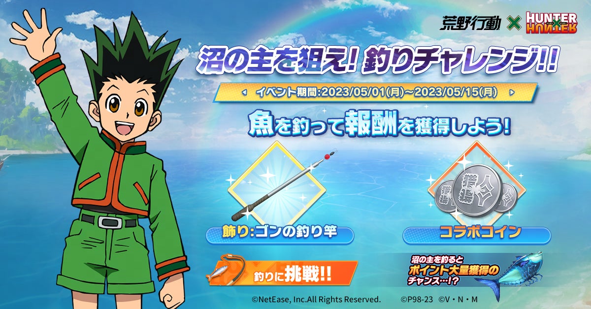 NetEase Gamesが開発・運営する大人気バトルロワイヤルゲーム『荒野行動』にて、2023年5月1日から5月15日の期間中、『HUNTER×HUNTER』とのコラボイベントを開催いたします。