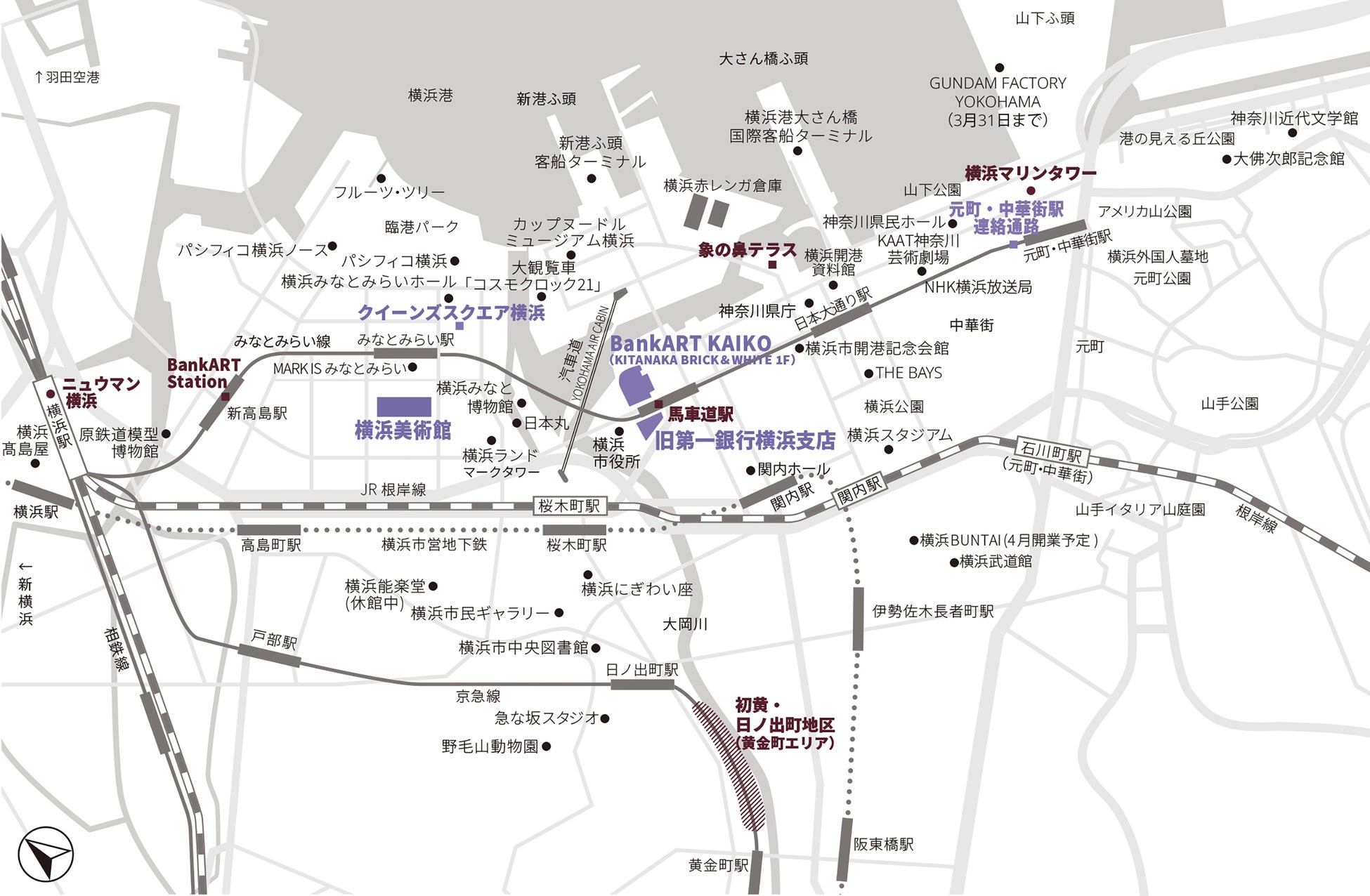 - 横浜駅から山手地区に広がるエリアで展示やプログラムが行われる