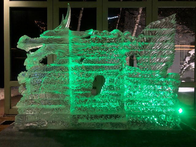 - 札幌パークホテルでは、さっぽろ雪まつりの開催に合わせて氷彫刻の展示を行う