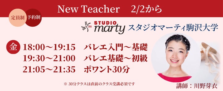 - 新しいクラスが開講され、バレエ入門から基礎、初級までのクラスがあり、ポワントのクラスもある。