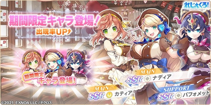 「バレンタイン2024ピックアップ1」ガチャが現在開催中です!ナディア、カティア、バフォメットがバレンタイン衣装で登場します。