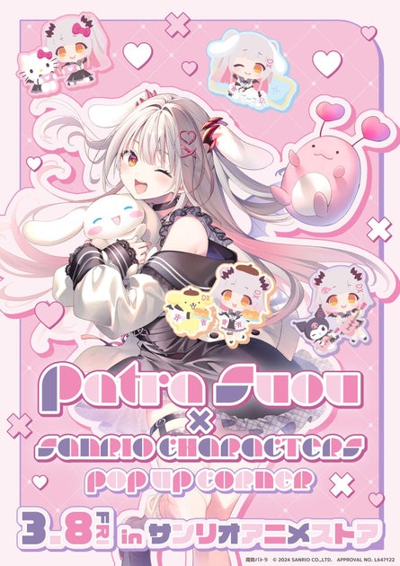2024年3月8日から、サンリオアニメストア池袋P’PARCO店では「周防パトラ×サンリオキャラクターズ」のPOP UPコーナーが開催されます。