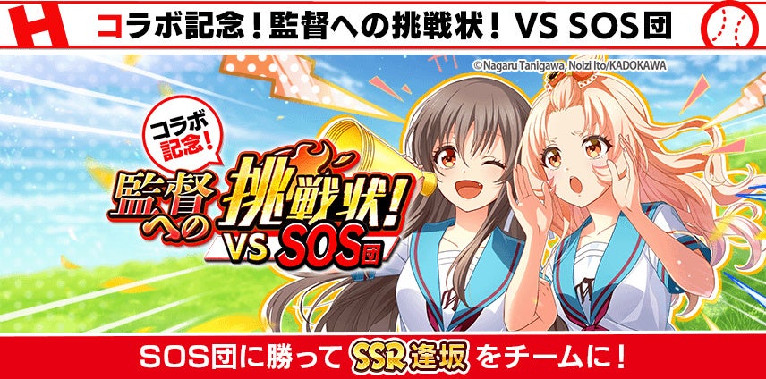 SOS団のSSR涼宮ハルヒ(CV. 平野綾)、SSR朝比奈みくる(CV. 後藤邑子)がコラボレーション限定スカウトにて新登場いたします。SSR朝比奈みくるは、URにシンデレラ覚醒が可能な選手となります。是非SOS団の団員をチームにお迎えください。