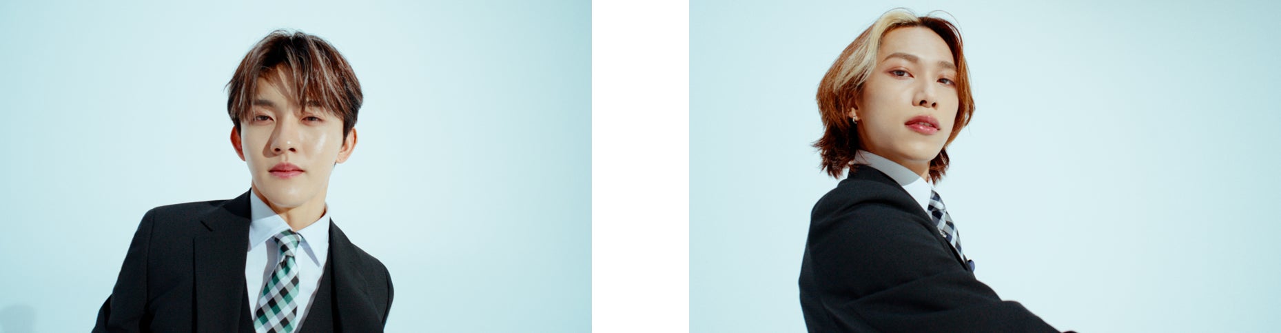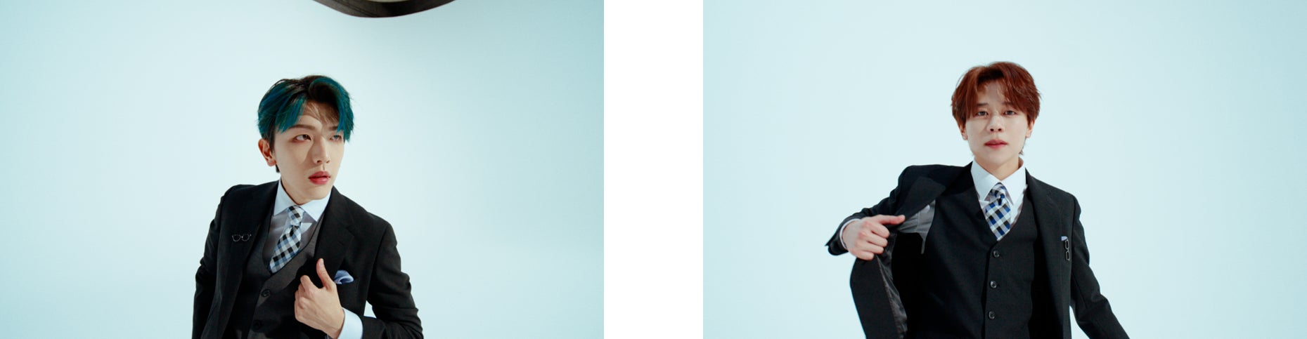 INIのメンバーからは、着やすく動きやすいだけでなく、メンバーカラーに合わせたチェック柄ネクタイやポケットチーフのアクセントが使いやすいというコメントをいただきました。
