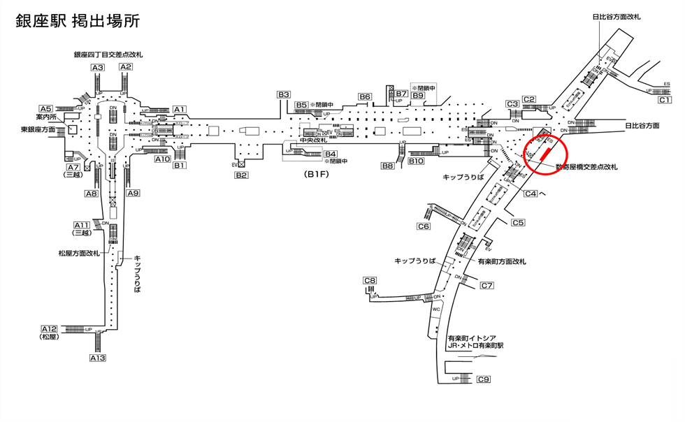 銀座駅(松屋方面改札)・日本橋駅・上野駅(2エリア分)・六本木駅(交差点方面改札)・恵比寿駅・飯田橋駅・ 明治神宮前〈原宿〉駅(明治通り方面改札)・豊洲駅(駅前交差点改札)・有楽町駅・ 高田馬場駅・北千住駅・大手町駅(丸ノ内線・千代田線・半蔵門線))