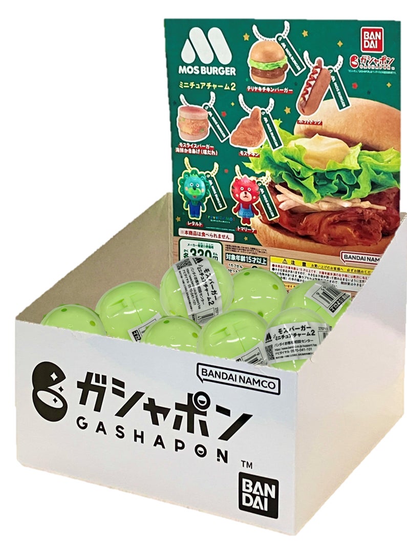 バンダイのカプセルトイ「ガシャポン?」が、販売機以外でも手に入る「GASHABOX」に、モスバーガーのメニューやキャラクターがミニチュアチャームとして登場します。
