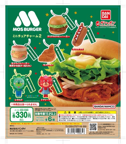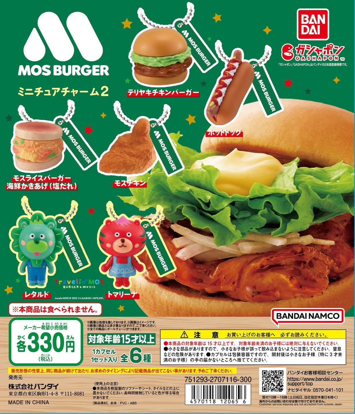 - バンダイのカプセルトイ「ガシャポン?」が、モスバーガーのメニューやキャラクターをミニチュアチャームとして登場