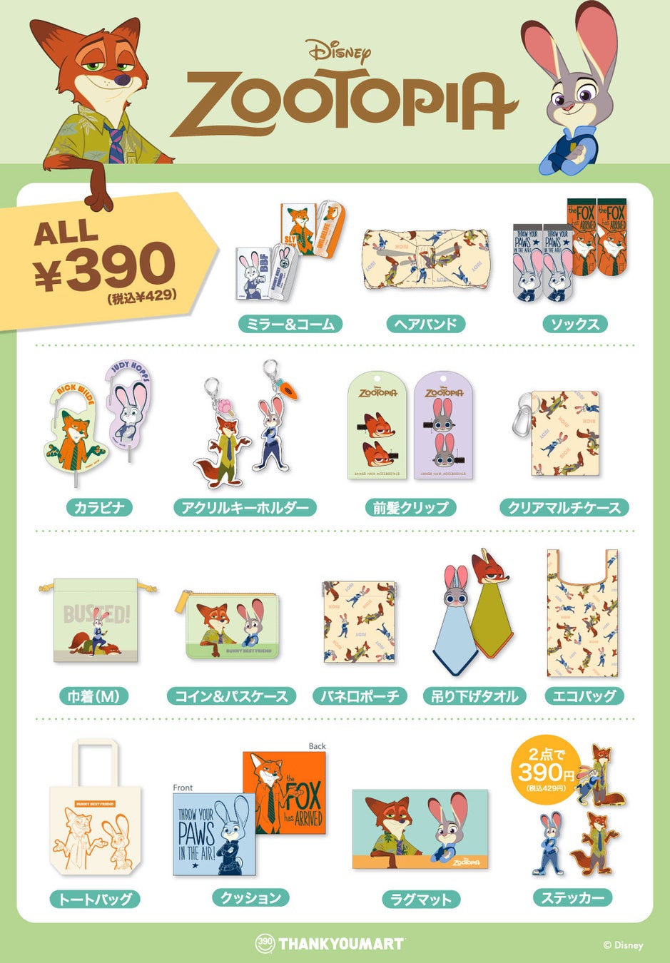 - サンキューマートでディズニー映画『ズートピア』デザインの限定アイテムが販売されます