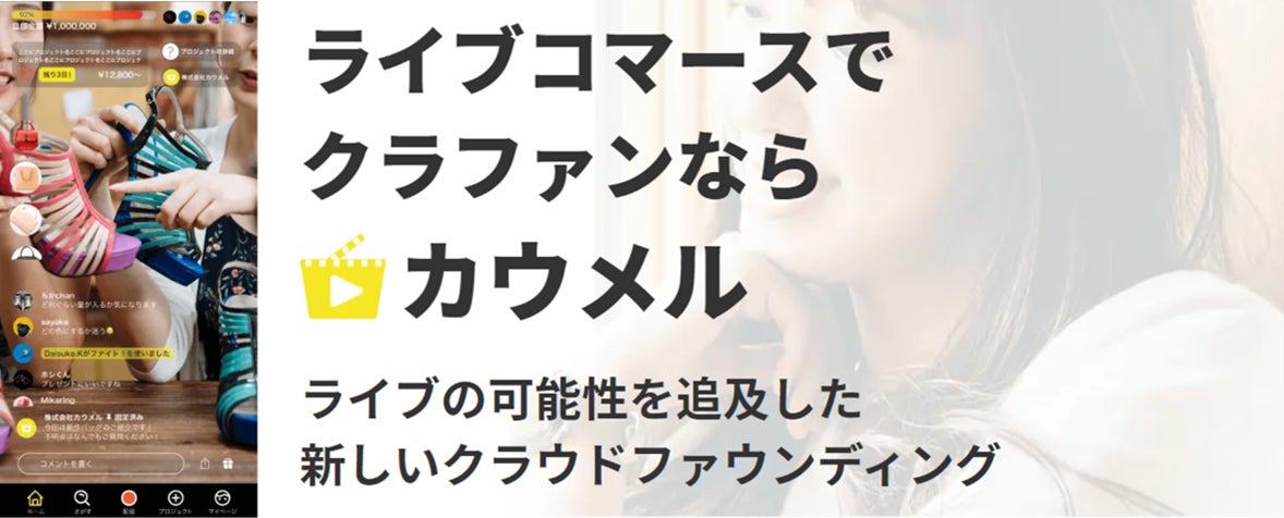 カウメルは、ライブコマースを通じて商品の魅力をわかりやすく、信頼性が高くユーザーに伝え、購入を募る新しい形のクラウドファンディングプラットフォームです。