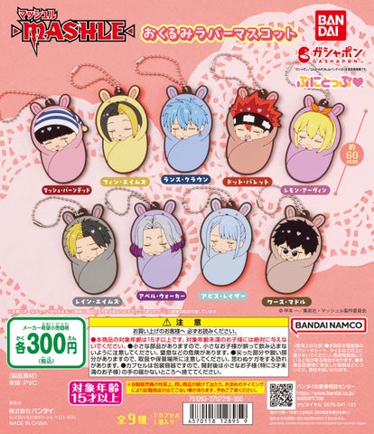 TVアニメ『マッシュル-MASHLE-』のキャラクターたちがおくるみに包まれたデザインのラバーマスコットが、カプセルトイとして発売されます。