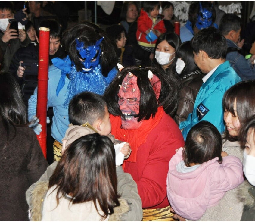 大原地域では、大原神社の節分祭に地域の住民が「鬼」として登場し、豆まきが行われます。