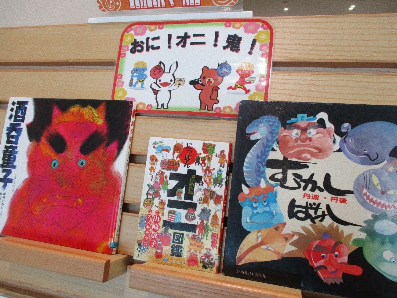 - 福知山駅周辺では図書館の展示や鬼商品特設コーナーが設けられる