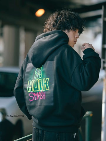 ジェンダーフリーなビッグシルエットの【THOR】スウェット、【HULK】フーディー、そして【MARVEL】トートバッグの全3アイテムがラインナップされています。