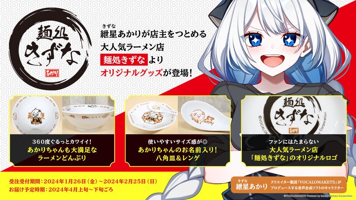 音声合成ソフトキャラクター「紲星あかり」が経営するラーメン屋『麺処きずな』から、オリジナルグッズが発売されます。