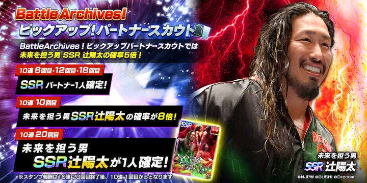 また、新たなパートナーとして、SSR「[未来を担う男]辻陽太」が登場する「Battle Archives!ピックアップ!パートナースカウト」も開催されています。