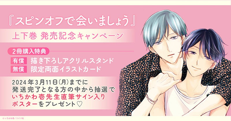 - ホーリンラブブックスでいちかわ壱先生の最新コミックス『スピンオフで会いましょう』上下巻の発売記念キャンペーンを実施