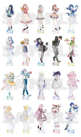 - アクリルスタンド、カード型アクリルスタンド、クリアファイルセット、ミニ色紙コレクション、ミニキャラシールセット、ミニキャラアクリルキーホルダーコレクション、ミニキャラトートバッグ、ミニキャラマイルドライナー